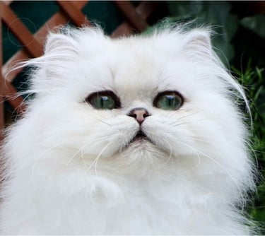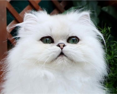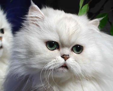 Der klassische Chinchilla verkörpert Harmonie und Eleganz in ihrer reinsten Form. Das Fell ist elfenbeinweiß mit feinstem Silbertipping, die Konturen zart und klar gezeichnet. Der Gesichtsausdruck ist offen und sanft – niemals übertypisiert, sondern von natürlicher Noblesse.