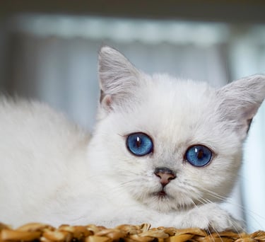 Er ist ein zierlicher, sehr harmonisch gebauter kleiner Kater mit perfektem Biss, fein modelliertem Köpfchen und einer bemerkenswert intensiven Augenfarbe, die seinem Gesicht einen ganz besonderen Ausdruck verleiht. Sein seidiges, kurzhaariges Fell unterstreicht die Eleganz seines Typs und bringt seine edle Linienführung perfekt zur Geltung.