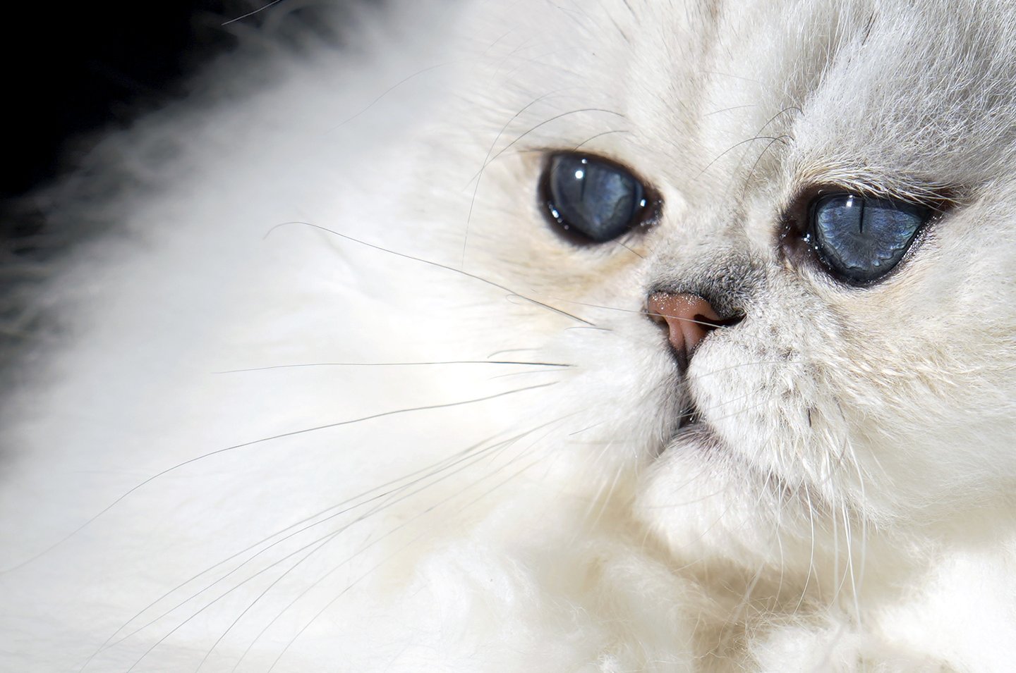 Keeper’s Augen sind ein Wunder der Natur. Sie tragen eine Farbe, die in der Welt der Perserkatzen nahezu einzigartig ist – ein intensiv pigmentiertes Türkis, das je nach Lichteinfall changiert wie die Oberfläche eines tropischen Ozeans. In einem Moment leuchten sie wie klares Smaragdgrün, im nächsten schimmern sie in tiefem Blaugrün, um schließlich in einem strahlenden Meerestürkis zu erblühen.