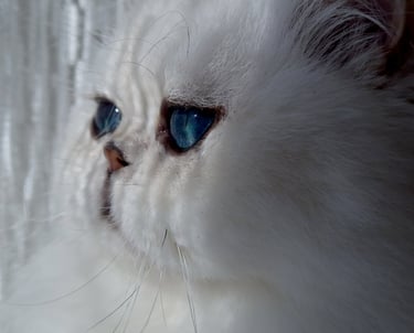Er ist nicht einfach nur ein Tier, er ist pure Faszination in Gestalt! Sein schneeweißes, von silbrigen Spitzen überzogenes Fell schimmert wie Morgentau im ersten Sonnenlicht, und seine außergewöhnlich türkisfarbenen Augen strahlen wie ein verborgenes Juwel, das in jedem Licht einen anderen Zauber entfaltet. Wer in diese Augen blickt, fühlt sich augenblicklich gefangen – zwischen Meerestiefen und smaragdgrüner Magie.
