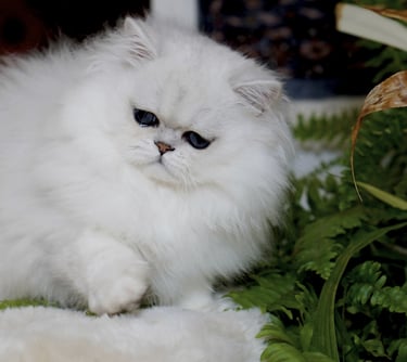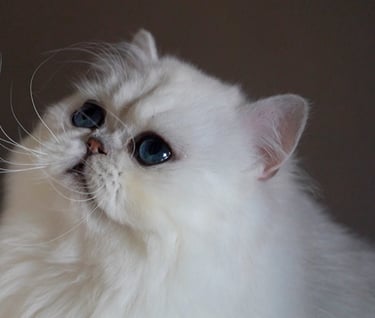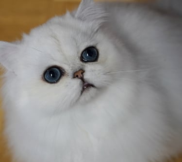 Doch hinter seiner liebevollen Seele steckt ein Kater von außergewöhnlicher Zuchtqualität. Kompakt, perfekt proportioniert, mit einem harmonischen Kopf, rundem Ausdruck und diesem seltenen, klaren Chinchilla-Tipping, das wie feiner Silberstaub über reinem Weiß liegt. Keeper vereint Typ, Eleganz und Seltenheit in einer Perfektion, die selbst in der Welt der Perserkatzen ihresgleichen sucht.