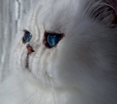 Diese seltene Farbnuance entsteht nicht durch das Colorpoint-Gen oder eine Verdünnung, sondern durch eine außergewöhnlich dichte Pigmentierung der Iris kombiniert mit einer besonderen Lichtbrechung. Das Ergebnis ist eine Tiefe und Brillanz, die man weder auf Fotos noch in Worten vollkommen einfangen kann – man muss ihr begegnen, um sie zu verstehen.