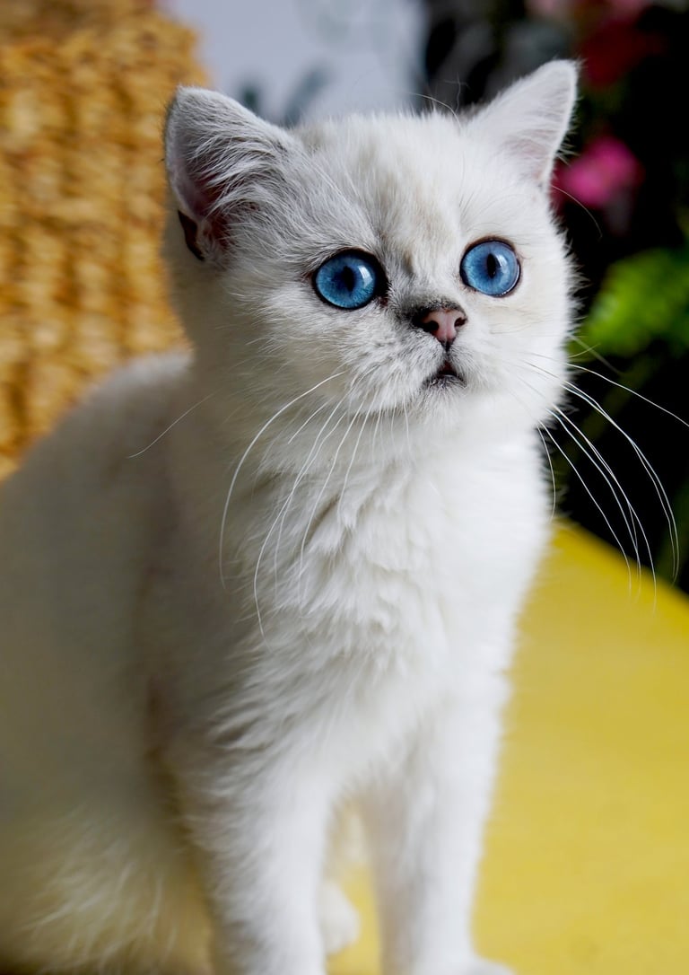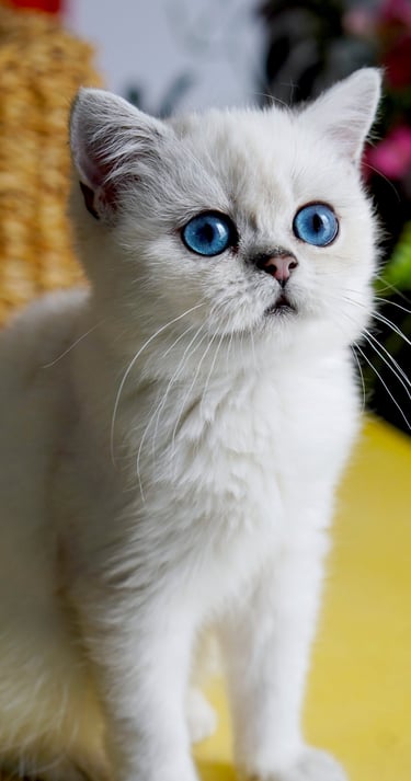 Er ist ein zierlicher, sehr harmonisch gebauter kleiner Kater mit perfektem Biss, fein modelliertem Köpfchen und einer bemerkenswert intensiven Augenfarbe, die seinem Gesicht einen ganz besonderen Ausdruck verleiht. Sein seidiges, kurzhaariges Fell unterstreicht die Eleganz seines Typs und bringt seine edle Linienführung perfekt zur Geltung.